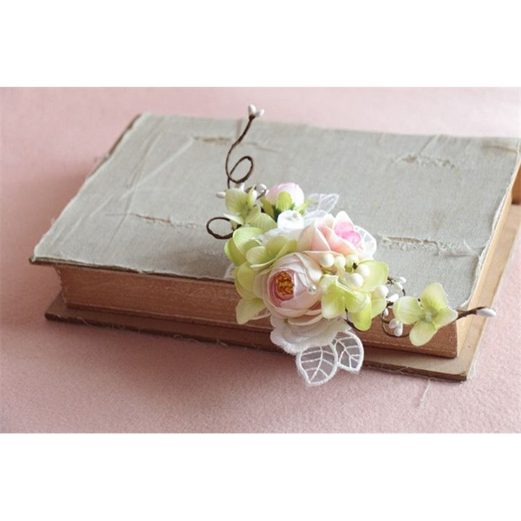 Niezwykły, ręcznie wykonany grzebyk do włosów z pięknym kwiatowym zdobieniem oraz koronką.Grzebyk o kształcie różowych i zielonych kwiatów, wykonanych z wysokiej jakości materiału.