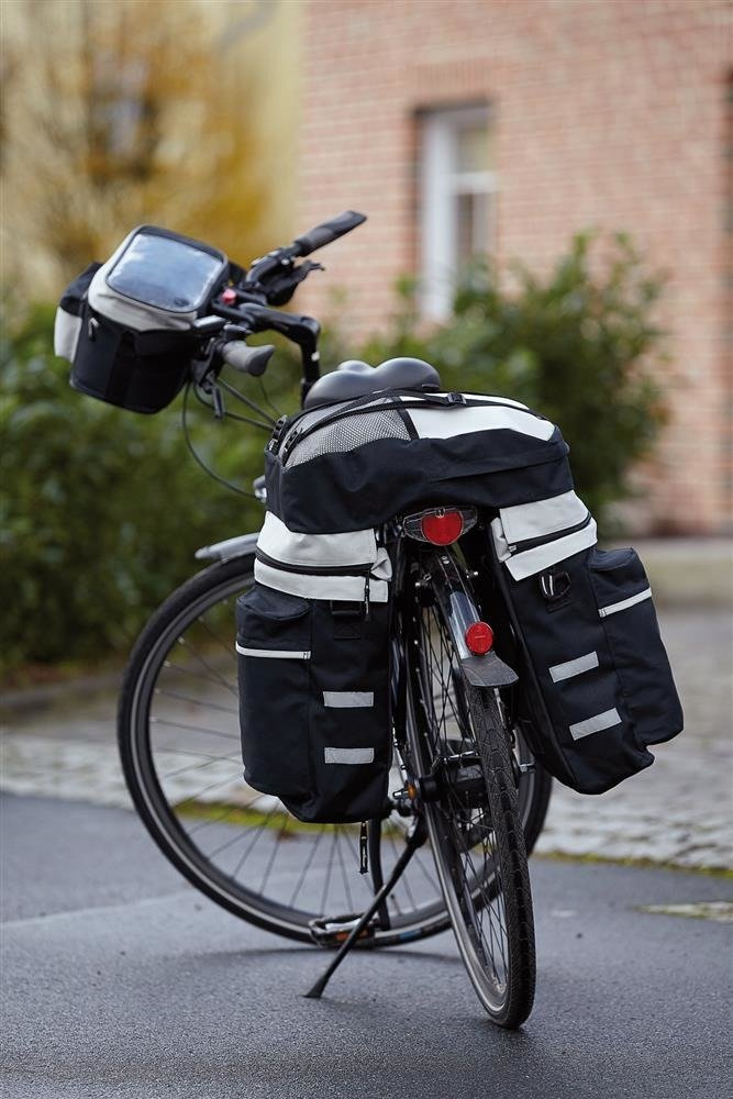 - 2 boczne torby z odblaskami , zamykane na zamki błyskawiczne.