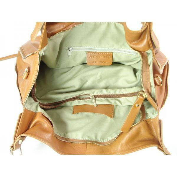 Cała torebka zapinana na zamek , bardzo pojemna i funkcjonalna.