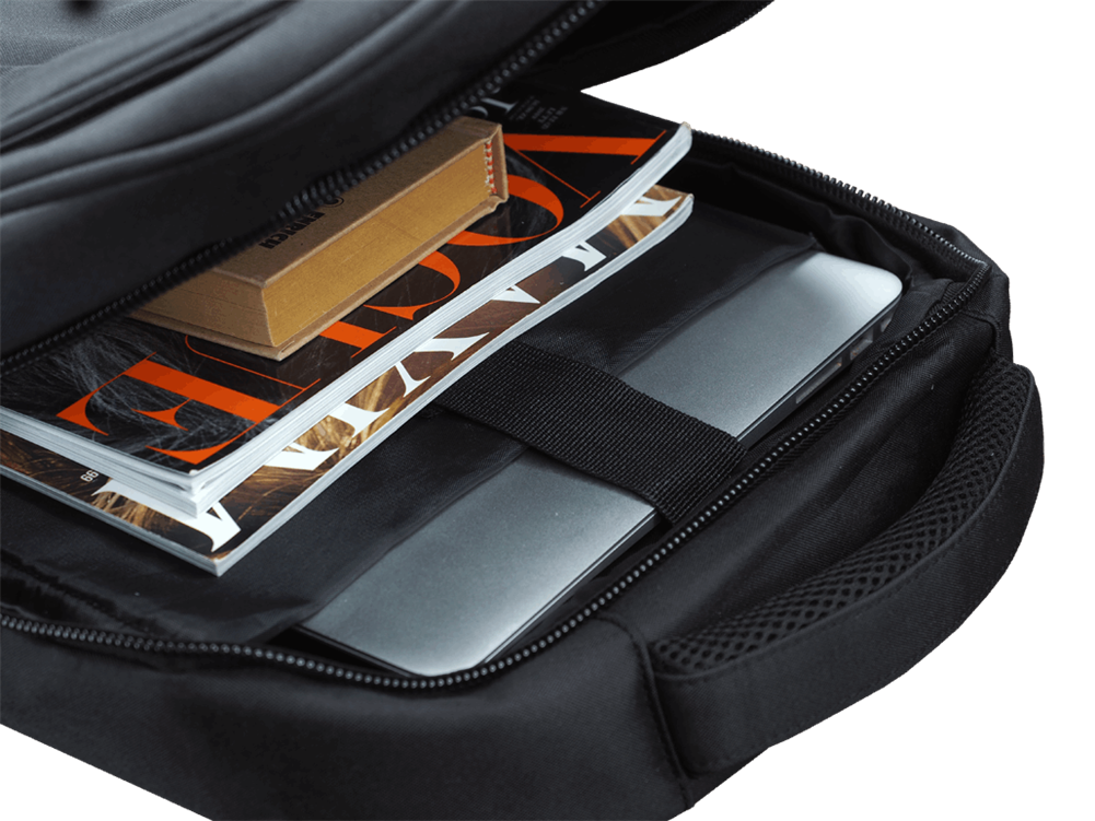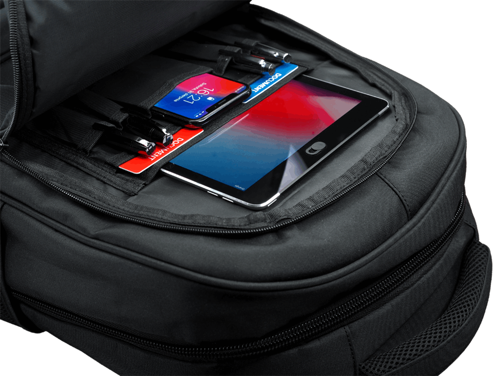 2 kieszenie z siatki 3 kieszenie na dokumenty 3 kieszenie zapinane na suwak 4 kieszenie na długopisy Kieszeń na laptop 17" Kieszeń na telefon