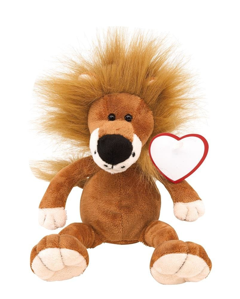 Pluszowy lew Fetzy z miękkim futerkiem i sercem do nadruku.