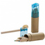 Oto najbardziej odpowiedni zestaw do rysowania dla najmłodszych, z 6 krótkimi, grubymi kredkami oraz temperówką w niebieskiej, transparentnej pokrywce.