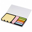 Notesik, który zawiera wszystko, czego potrzebujesz: żółte i różowe karteczki samoprzylepne (ok. 90 kartek) i memo zakładki w pięciu kolorach (ok. 90 karteczek).