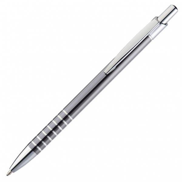 Wyjątkowości nadają mu chromowane krążki, ciekawie kontrastujące z połyskującą powierzchnią całego długopisu.