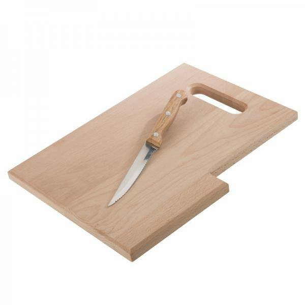 W desce umieszczony został za pomocą magnesów uniwersalny nóż, na ostrzu którego również możemy wygrawerować Twoje logo. Uwaga: ze względu na naturalny materiał, z którego są wykonane deski, ich kolor może się nieco różnić. Pojedynczo pakowane w woreczek foliowy.