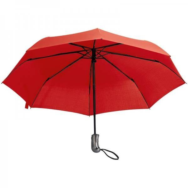 Prezent na niepogodę - wytrzymała, składana parasolka wykonana z tkaniny poliestrowej pongee 190T, z rączką z włókna szklanego/metalu.