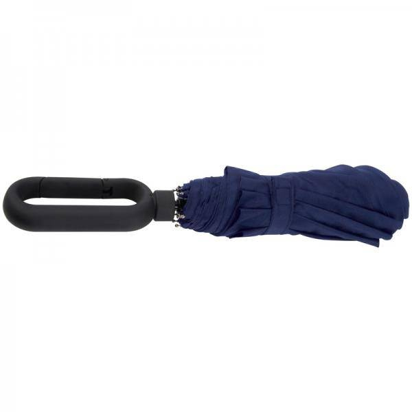 Niewielka parasolka z gumowaną rączką-karabińczykiem.