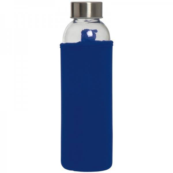 Szklana butelka na napoje o pojemności 500ml z metalową zakrętką oraz etui z neoprenu.