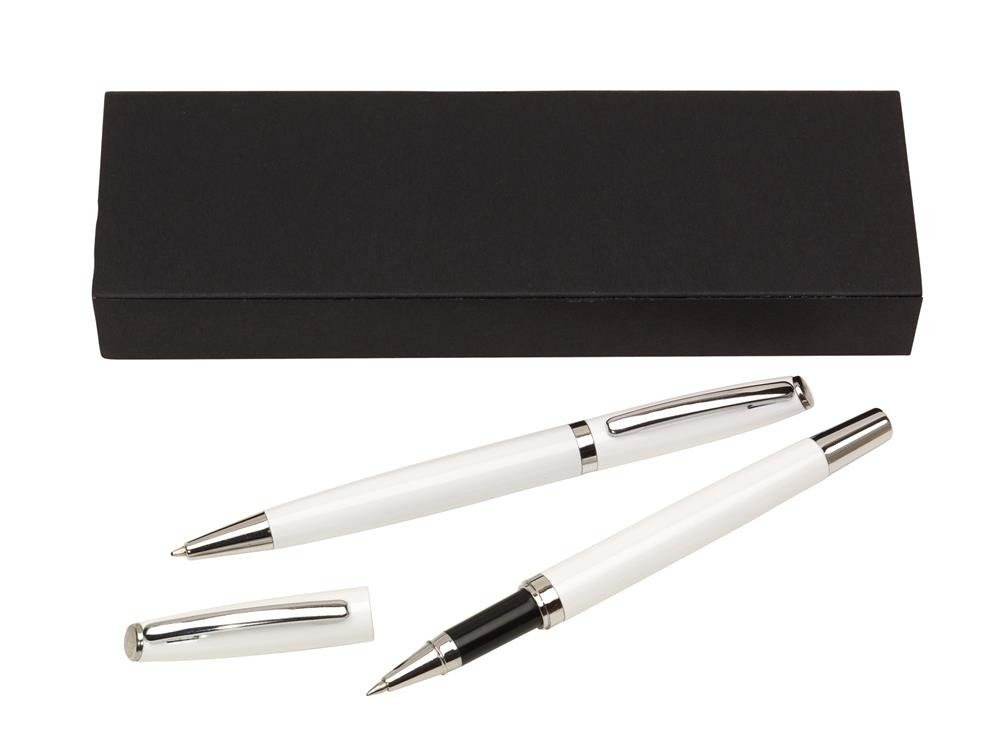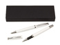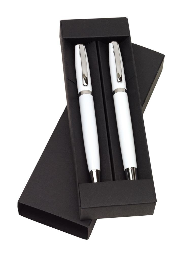 Zestaw do pisania Alphabet składa się z długopisu z mechanizmem obrotowym i pióra kulkowego, czarny tusz, pakowany w pudełko.