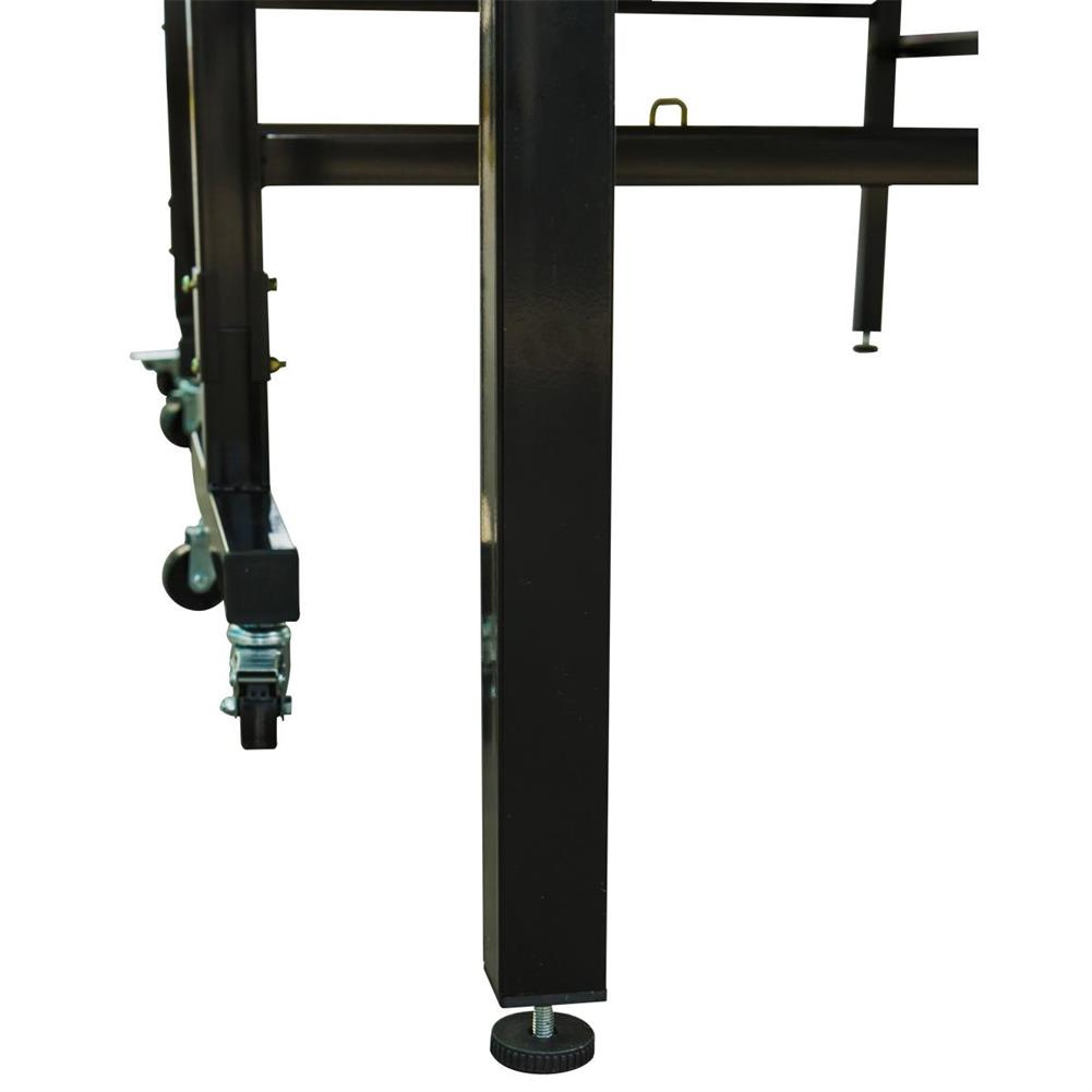 Mocna stalowa konstrukcja ze wspornikami oraz stopki z możliwością regulacji poziomu pozwolą na grę na stabilnym podłożu.