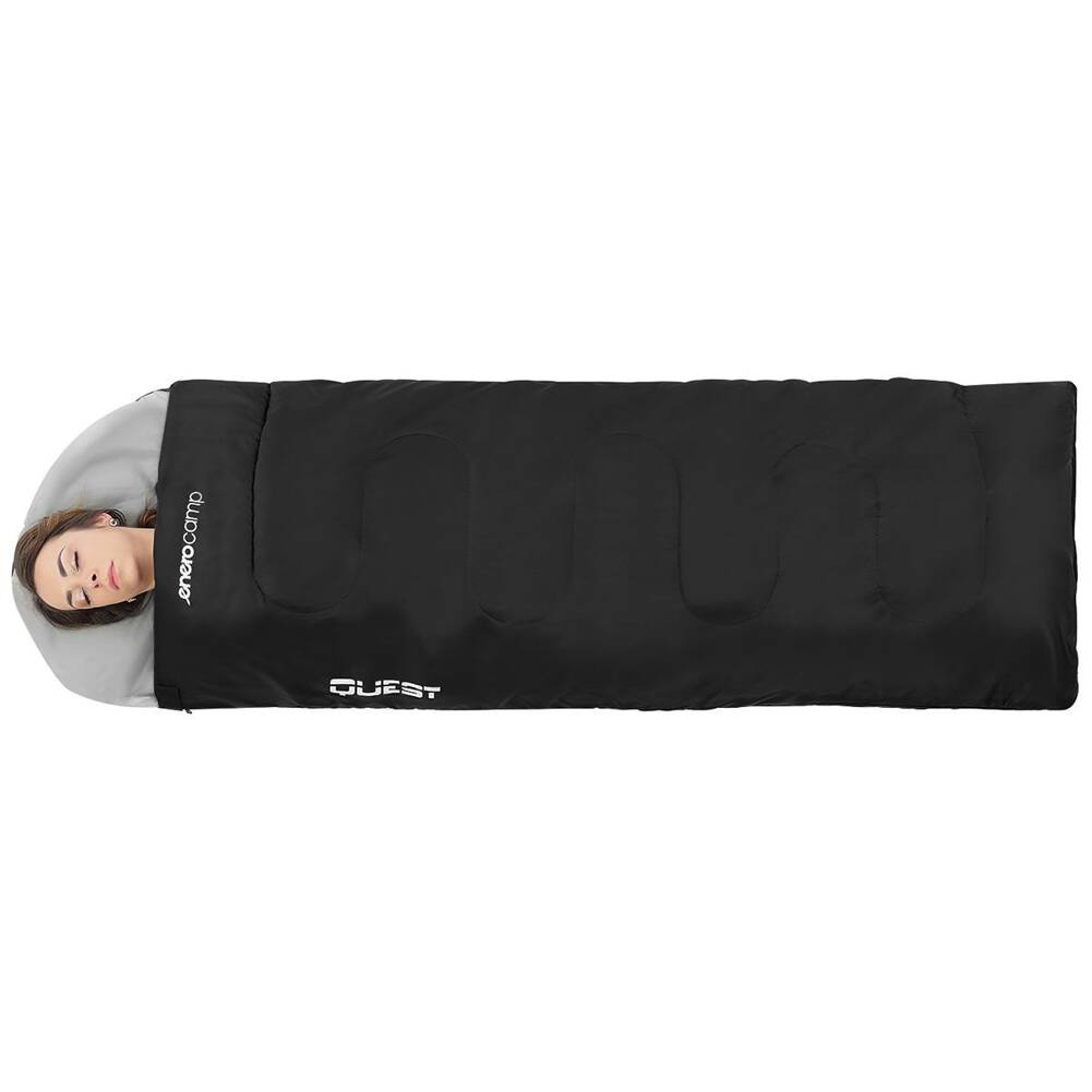 Śpiwór QUEST to praktyczny klasyczny śpiwór łączący w sobie zalety kołdry i śpiwora. Idealnie sprawdzi się na wycieczkach szkolnych, campingach, obozach jak i pod namiotem. Wypełnienie nie chłonie wilgoci, jest antyalergiczne, szybkoschnące i lekkie a przeszycia na całej jego powierzchni, zapobiegają przesuwaniu się. Specjalny materiał z którego jest wykonany zachowuje swoje właściwości ocieplające nawet w wilgotnych warunkach. Śpiwór dzięki specjalnym pasom można skompresować do minimalnych wielkości. Nie zwlekaj z zakupem! Śpiwór turystyczny kołdra 210 x 70 cm Quest czarny spełni Twoje oczekiwania!