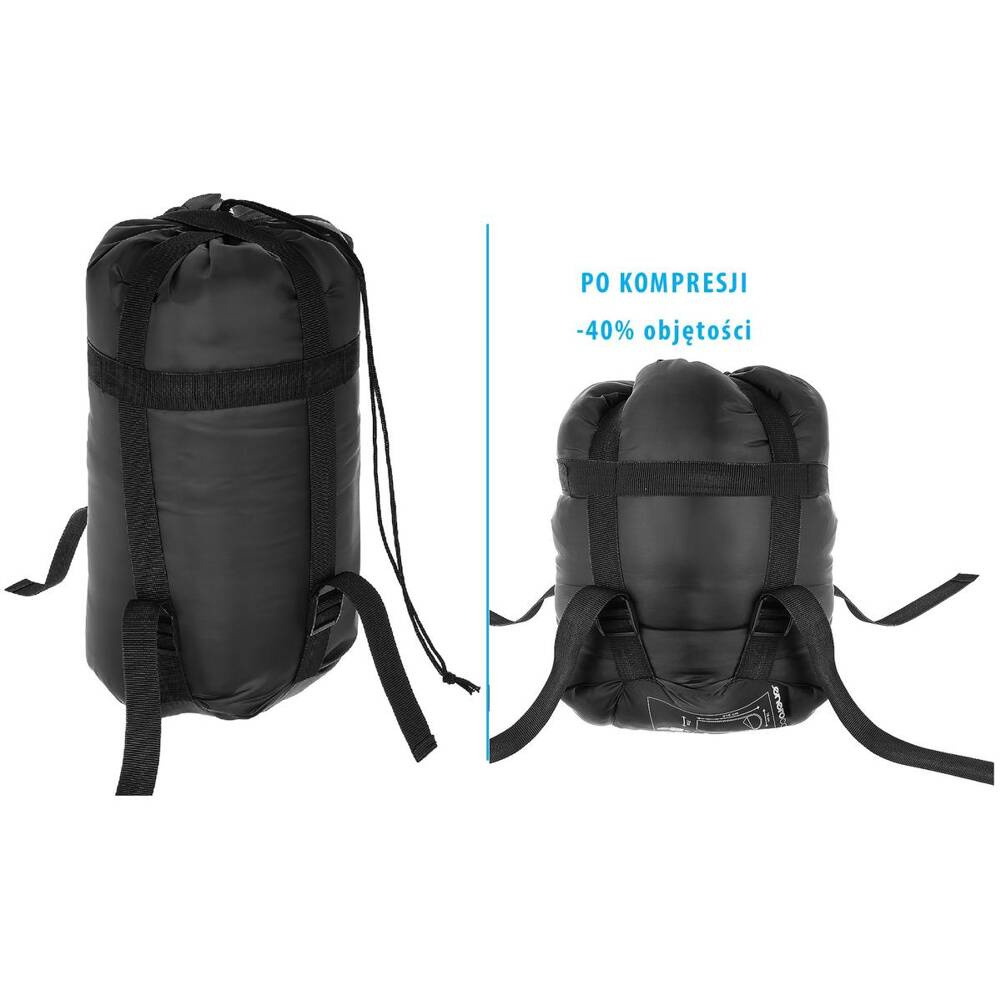 - pokrowiec wyposażony w pasy kompresyjne, pozwoli na spakowanie śpiwora w jak najmniejszym rozmiarze