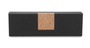 Gustowne etui w kolorze czarnym ozdobione elementem korkowym.
