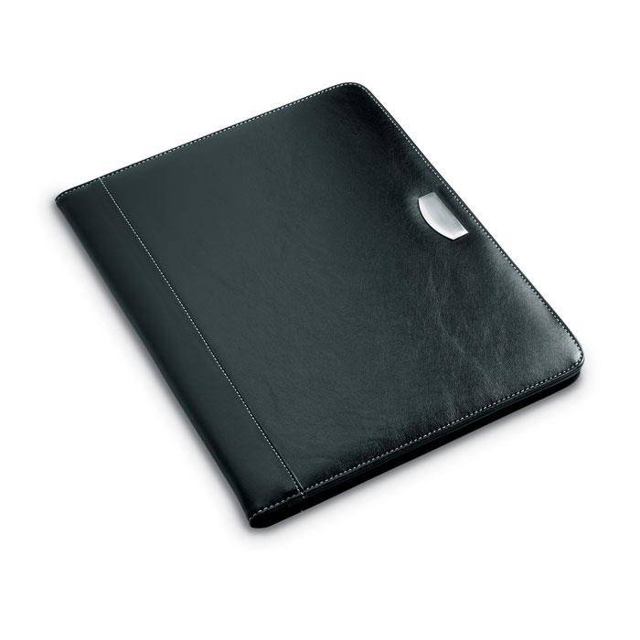 20-kartkowy notes A4 z materiału PU i metalową płytką do nadruku logo.