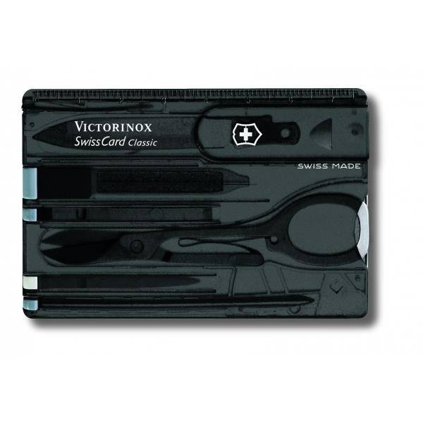 1. Nóż (również do otwierania listów) 2. Pilnik do paznokci ze 3. - Śrubokrętem 4. Nożyczki 5. Pęseta 6. Wykałaczka 7. Długopis 8. Szpilka 9. Miarka z podziałką centymetrową 10. Miarka z podziałką calową