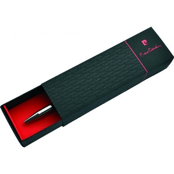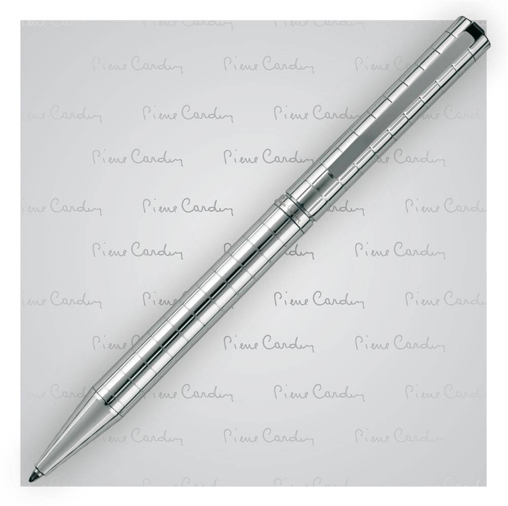 Nowoczesny długopis metalowy z oryginalnym, grawerowanym korpusem i mechanizmem obrotowym. Wyposażony w wysokiej jakości niebieski wkład z końcówką 1 mm. W zestawie z wkładem zapasowym piszącym na czarno. Zapakowany w eleganckie pudełko prezentowe z certyfikatem autentyczności Pierre Cardin.