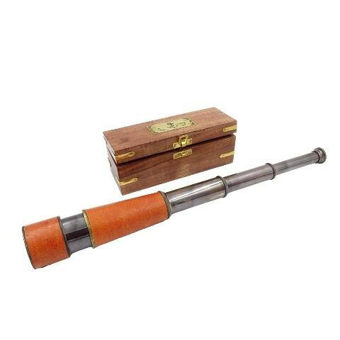 Luneta mosiężno-skórzana w pudełku drewnianym – NC2356B