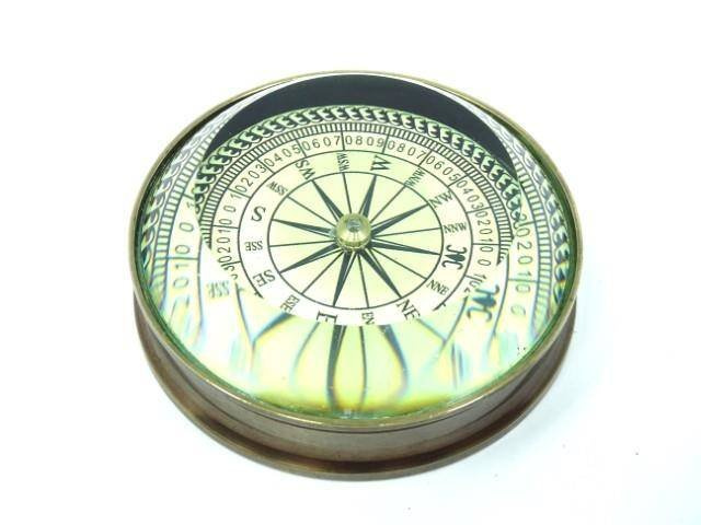 Duży kompas soczewkowy to świetny element dekoracji biurka każdego miłośnika podróży. Będzie doskonałą dekoracją kajuty lub pokoju w stylu marynistycznym. Kompas sprawdzi się jako ciekawy przycisk do papieru.