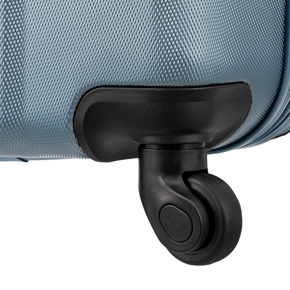 - 4 koła (spinner 360) (koła wykonane z gumy i PVC co dodatkowo wzmacnia je przed uderzeniami zewnętrznymi, oś na której zamocowane zostało koło wzmocniona pyłem diamentowym),