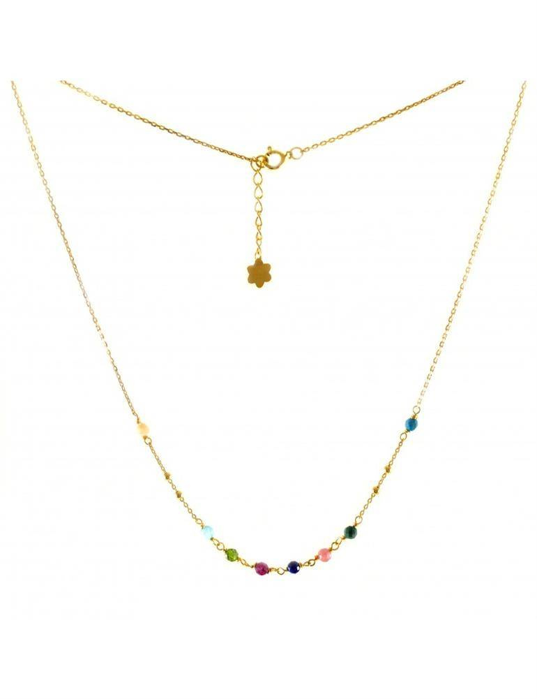 Naszyjnik wykonany ze srebra próby 925 , pozłacanego 24 karatowym, żółtym złotem Kamień: Amazonit + Opal+ Lapis + Diopsyd + Hematyt +Rubin Rozmiar kamienia: 3 MM Długość :42 cm + przedłużka do 45 cm (szyja) Długości do wyboru: 38 cm /42 cm/ 45 cm ( są to najkrótsze wymiary naszyjnika-każdy model ma dodatkową przedłużkę) WIĘCEJ INFORMACJI