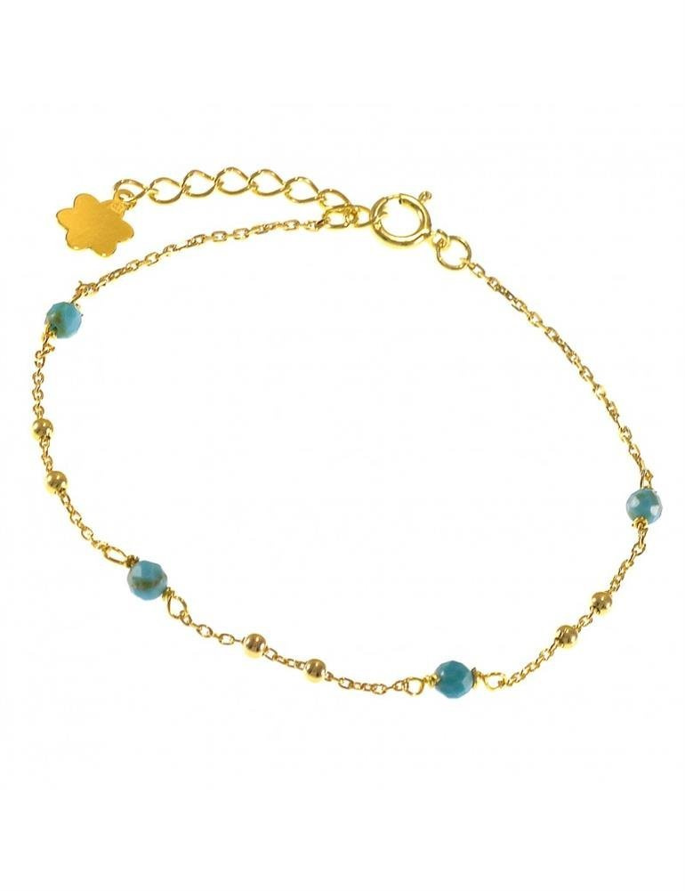 Bransoletka wykonana ze srebra próby 925 , pozłacanego 24 karatowym, żółtym złotem Kamień: Magnezyt Rozmiar kamienia: 3 MM Długość :17,5 cm + przedłużka do 19,5 cm Możliwość zmiany