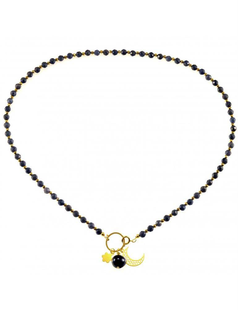 Naszyjnik wykonany ze srebra próby 925 , pozłacanego 24 karatowym, żółtym złotem Kamień:Szafir +Perła + Hematyt (BAZA) Rozmiar kamienia: 4/3/6 mm Długość :45 cm  Możliwość zmiany kamienia WIĘCEJ INFORMACJI Długości do wyboru: 38 cm /42 cm/ 45 cm WIĘCEJ INFORMACJI