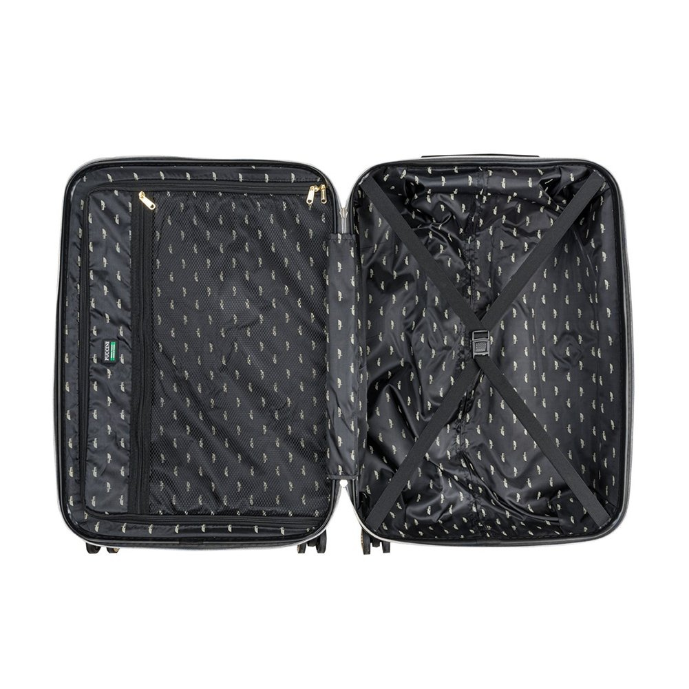 - cztery boczne stopki, pozwalające na położenie walizki bez ryzyka jej porysowania