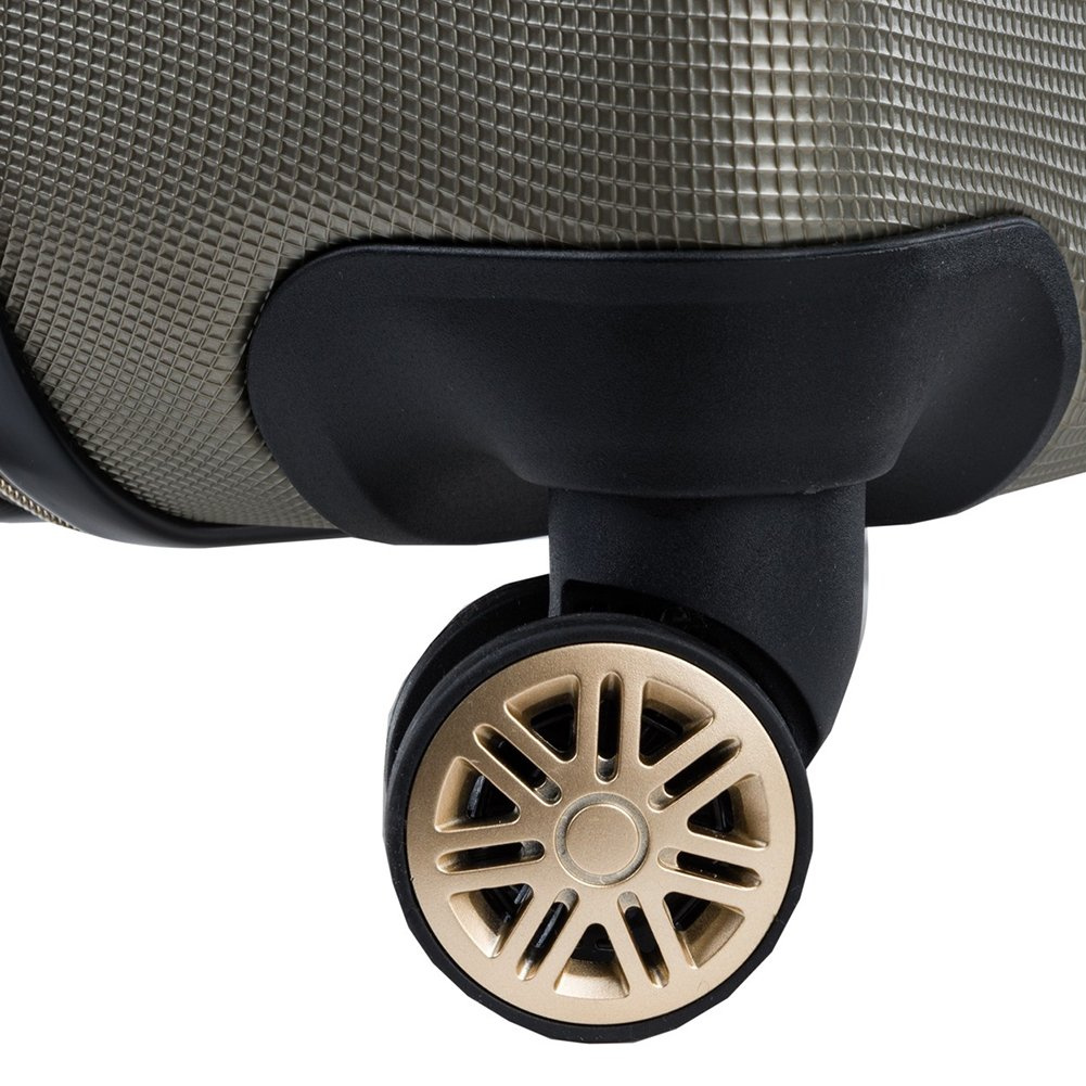 - 4 podwójne koła (spinner 360) (koła wykonane z gumy i PVC co dodatkowo wzmacnia je przed uderzeniami zewnętrznymi, oś na której zamocowane zostało koło wzmocniona pyłem diamentowym)