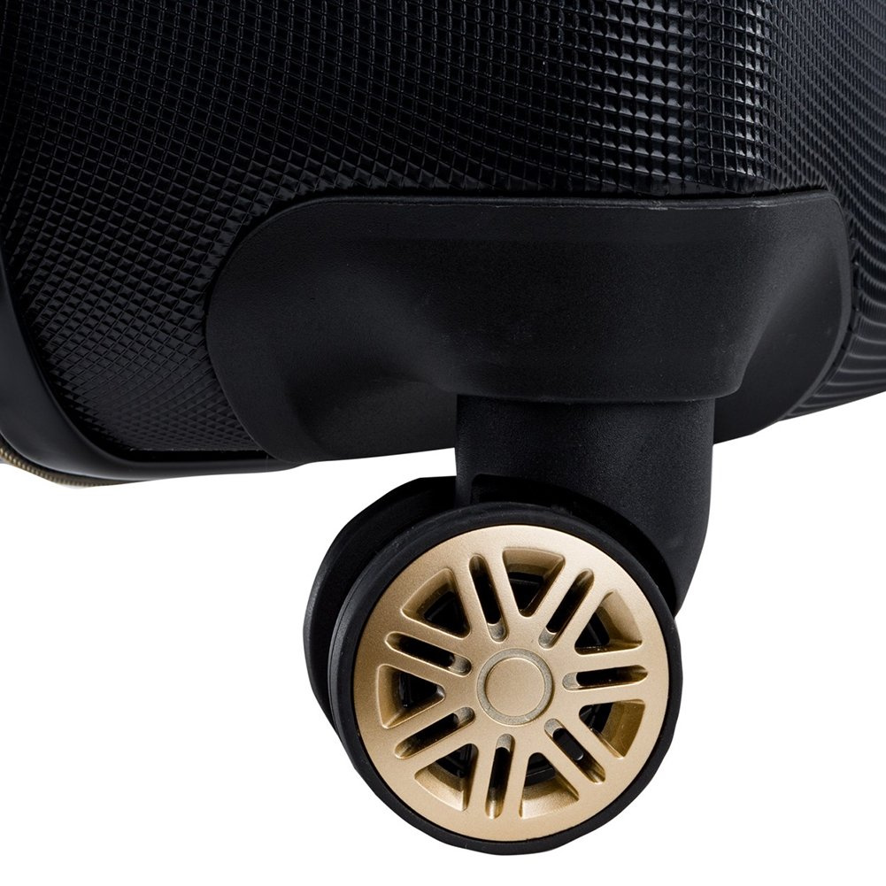 • 4 podwójne koła (spinner 360) (koła wykonane z gumy i PVC co dodatkowo wzmacnia je przed uderzeniami zewnętrznymi, oś na której zamocowane zostało koło wzmocniona pyłem diamentowym)