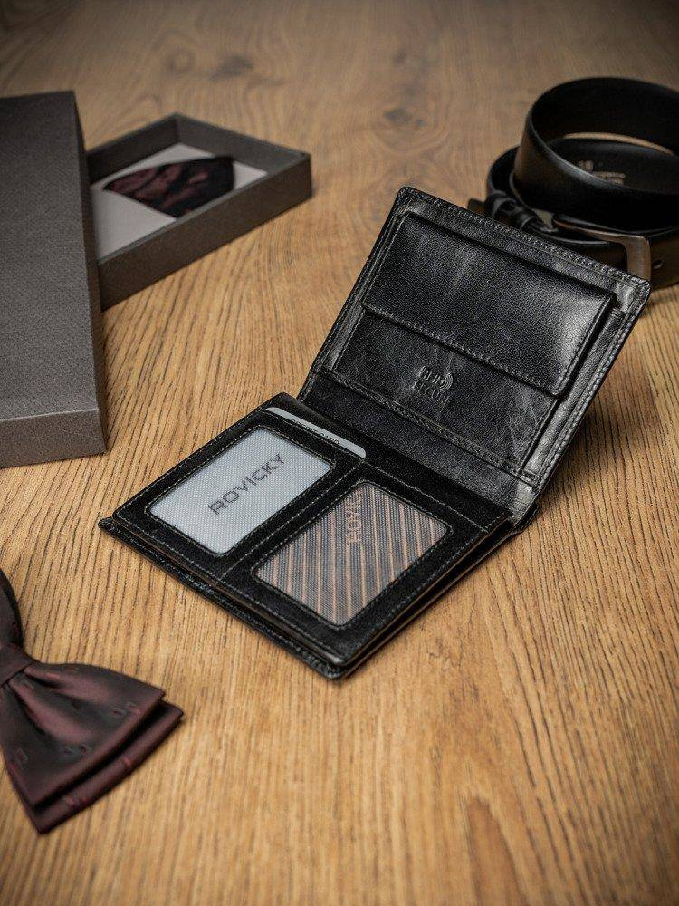 Portfel Polskiej marki ROVICKY to produkt klasy premium w przystępnej cenie. Wykonany jest z wysokiej jakości, naturalnej skóry licowej, w kolorze czarnym.