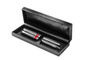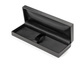 Eleganckie pudełko na dwa artykuły piśmiennicze wykonane z czarnego tworzywa z czarną wyściółką wewnątrz.
