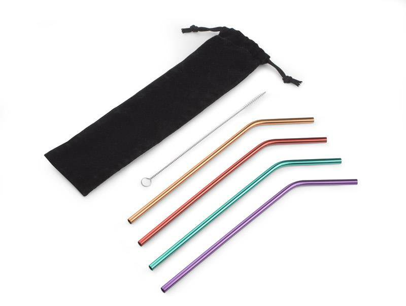 Zestaw słomek ze stali nierdzewnej PARTY to cztery zakrzywione słomki - każda w innym kolorze. Zapakowane w praktyczny, welurowy woreczek, czyścik w zestawie. Idealnie sprawdzą się jako zestaw prezentowy. Świetnie wyglądają w szkle i nadają drinkowi oryginalności. Jest to produkt wielorazowego użytku, dzięki czemu nie przyczyniasz się do zaśmiecania środowiska.