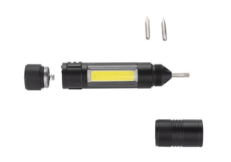 Oprócz głównej funkcji, czyli lampki COB, w produkcie znajdziemy również zestaw trzech bitów: płaski, krzyżowy i gwiazdkowy.