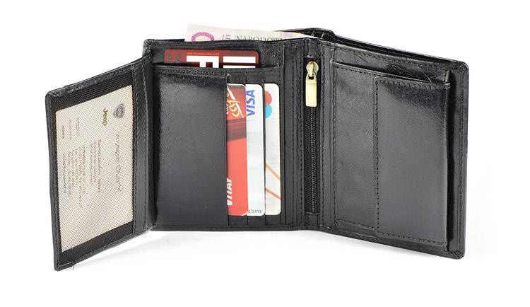 Dodatkowo portfel wyposażony jest w folię zabezpieczającą przed kradzieżą danych z kart kredytowych, blokując sygnał RFID.