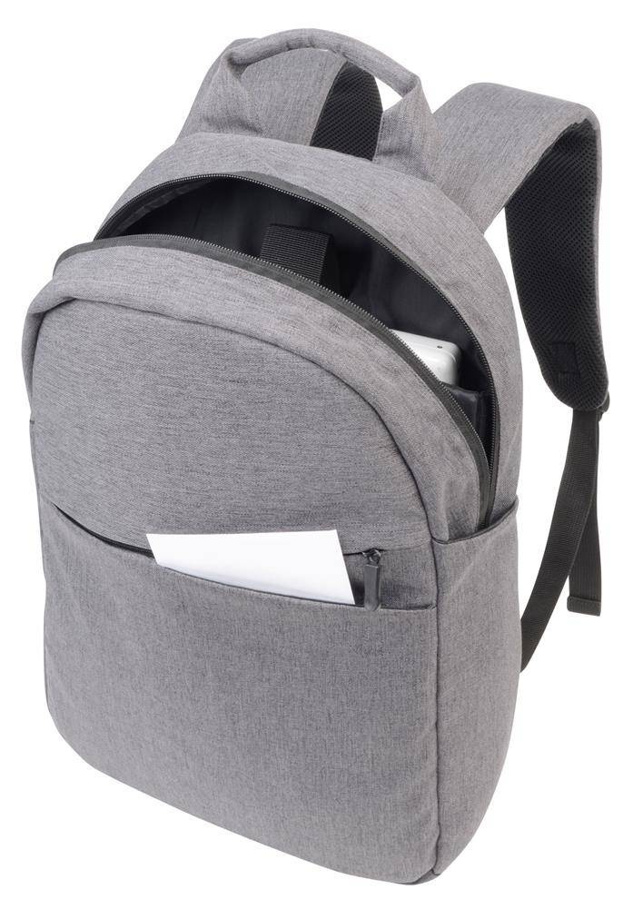 Plecak CAMBRIDGE z pionową przednią kieszenią z zamkiem błyskawicznym, 1 kieszenią do wsuwania dokumentów, 1 główną przegrodą z zamkiem błyskawicznym i 1 wyściełaną przegrodą wewnętrzną na laptopa lub tablet, z organizerem z 6 wsuwanymi kieszeniami. Posiada wyściełane i ergonomicznie ukształtowane szelki oraz wyściełane oparcie pleców. Materiał wodoodporny.