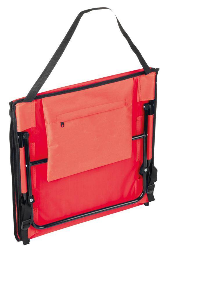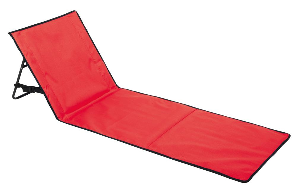 Składana mata plażowa SUNNY BEACH z regulowanym oparciem i zapinaną na zamek kieszenią na drobiazgi.