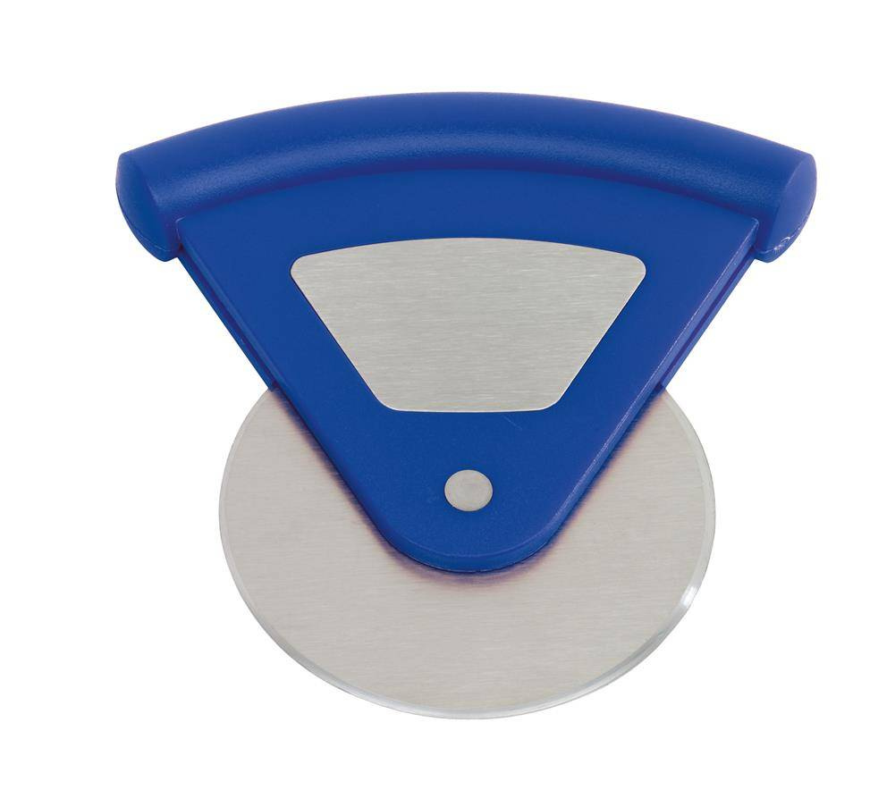Nóż do pizzy USEFUL z kółkiem krojącym ze stali nierdzewnej, solidną, plastikową rączką z miejscem na reklamę, pakowany w pudełko.
