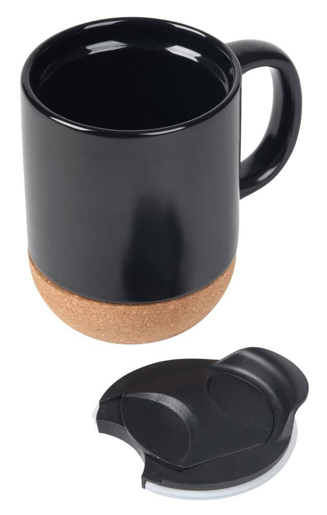 Kubek DAY & NIGHT. Ceramiczny kubek z korkowym dnem, które można zdjąć do czyszczenia. Zdejmowane wieczko. Pojemność ok. 350 ml.