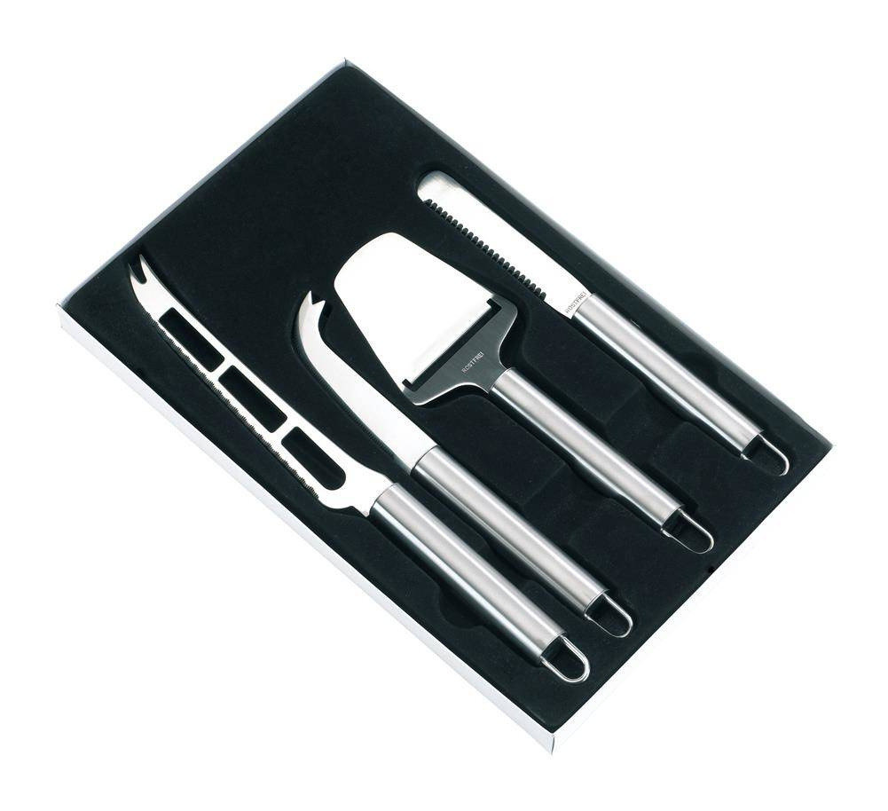 Sztućce do sera CHEESE z nożem do delikatnych serów, nożem do twardych rodzajów sera, ostrzem o falistym kształcie, wszystkie sztućce mają praktyczne zawieszki,