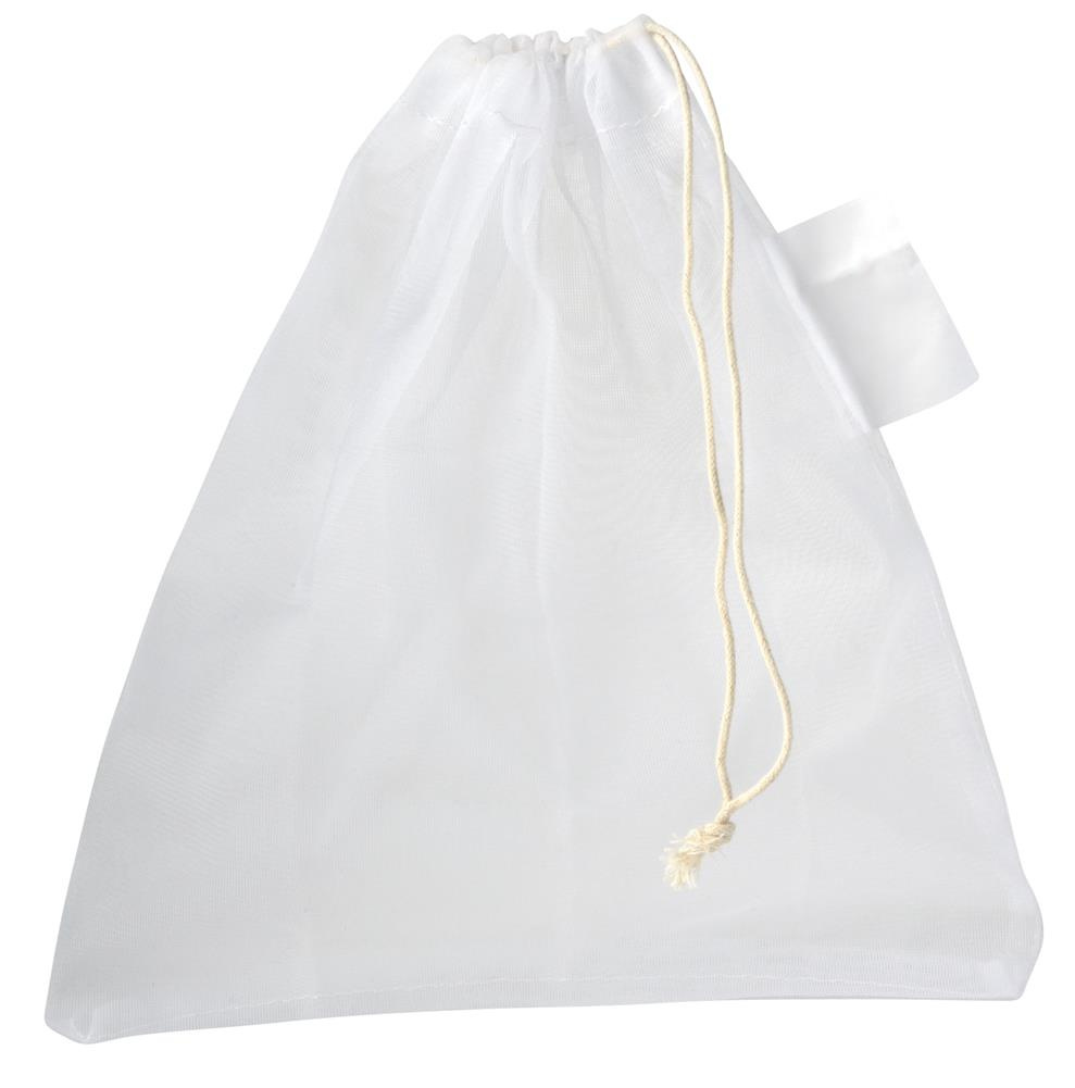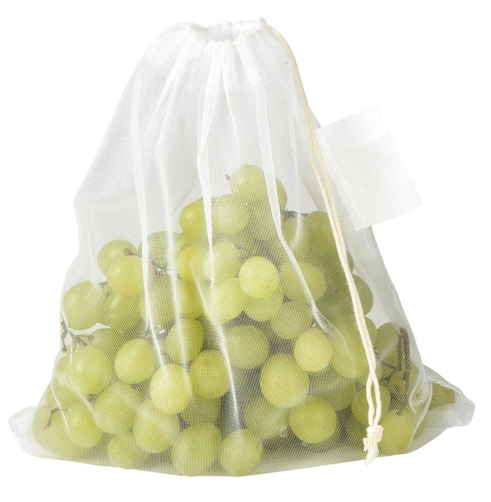 Siatka na owoce i warzywa BLUE PLANET: z materiałów pochodzcych z recyklingu, zamykana ściągaczem, do prania, wielokrotnego użytku, z etykietą do druku