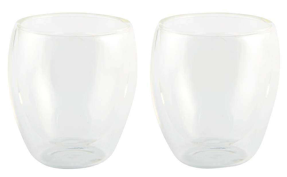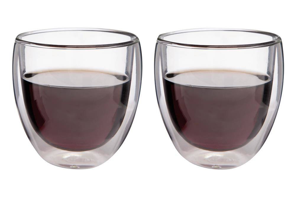 Zestaw 2 szklanek DRINK LINE odpornych na temperaturę, o podwójnych przezroczystych ściankach, pojemność ok. 100 ml, zapakowane w eleganckie pudełko.