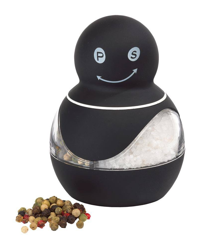 Młynek do soli i pieprzu INNOVATION, gumowana powierzchnia, przezroczyste okienka, mechanizm obrotowy pozwalający zmielić z jednej strony pieprz, a z drugiej sól.