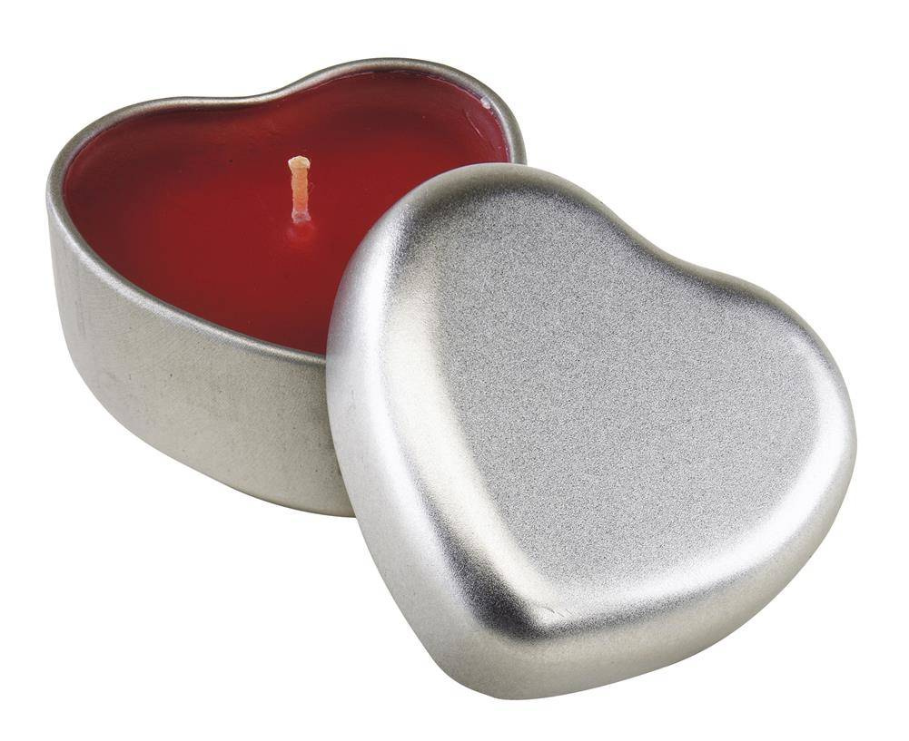 Świeczka o zapachu wanilii GOOD SPIRITS w metalowym świeczniku w kształcie serca.