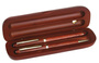 Zestaw z drewna różanego POET składa się z pióra wiecznego i długopisu (niebieski tusz) w etui - całość z drewna różanego ze złotymi akcentami.