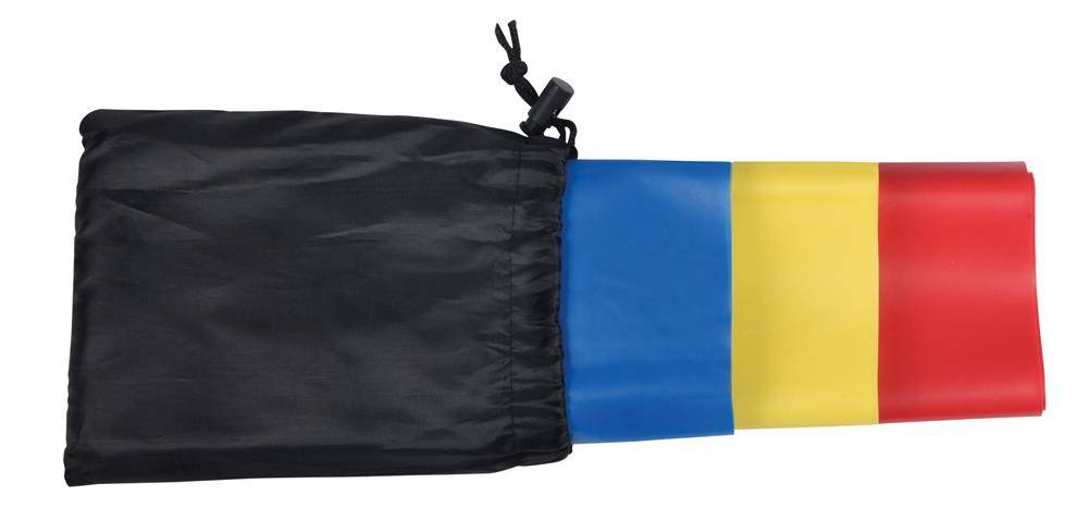 Zestaw gum oporowych GYM HERO. Składa się z 3 elastycznych gum w 3 kolorach o różnych mocach (opór mały, średni, duży). Idealny do treningu siłowego, wzmacniania i rozciągania mięśni. W poliestrowej torbie zamykanej sznureczkiem ze stoperem.