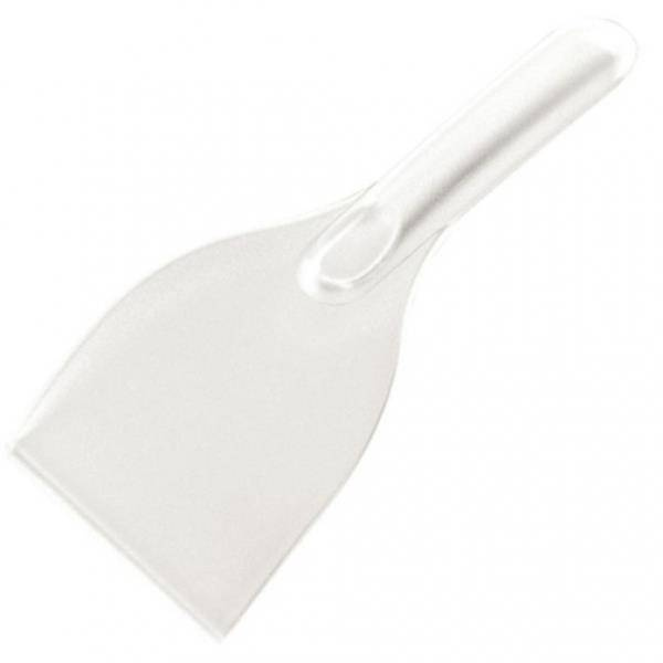 Plastikowa skrobaczka do szyb z ergonomicznym uchwytem.