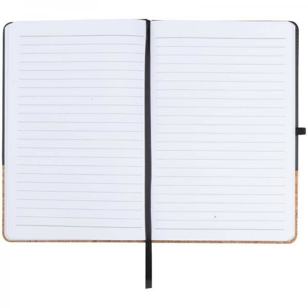 Jest w twardej oprawie PU , zawiera zakładkę, pętelkę na długopis oraz elastyczną taśmę do zamykania.