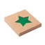 Zestaw 4 podkładek filcowych RPET w kształcie gwiazdek w pudełku z papieru kraft.