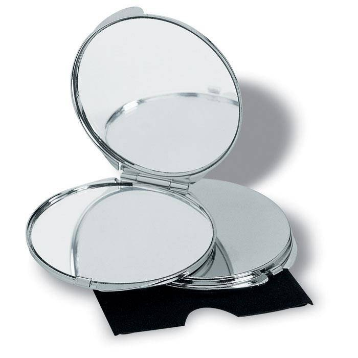 Dwa lusterka do makijażu, zwykłe i powiększające, w welwetowym etui.