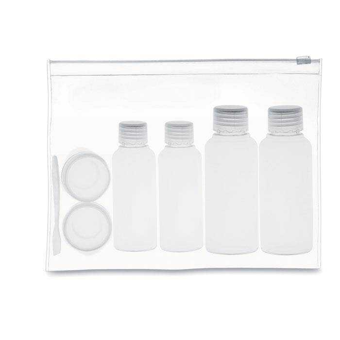 Zestaw 6 plastikowych opakowań na kosmetyki.